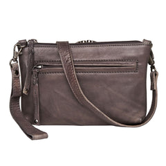 The Amelia small crossbody by Lady Conceal is crafted with soft, quality full-grain leather and highlighted with gunmetal-tone hardware. You will fall in love with this simple design for concealed carry. The full-size front pocket is a closed zippered pocket. The central interior features a zippered pocket, an open slip pocket, and a leather key strap for immediate access to your keys. The adjustable crossbody strap measures 33" - 59" L (drop 16 - 30" L) by 5/8" W. The wristlet strap is removable and measures 7.5".