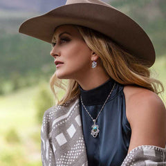 Celebrate the legacy of Montana Silversmiths with the final installment of the Legacy Tribute Collection. The Empowered Montana Legacy Necklace features a breathtaking floral design in a bright silver tone. The open cut tendrils and intricately engraved flowers frame the oval turquoise stone that serves as the centerpiece of the design. The pendant is secured by a silver tone bail with an engraved flower artfully engraved to complement the pendant.