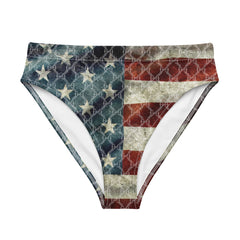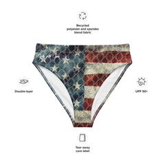 Elevate your style with this high-waisted bikini bottom featuring a captivating pattern of red, white, and blue stars and stripes. Embodying a sense of American pride, this exclusive piece is sure to turn heads.