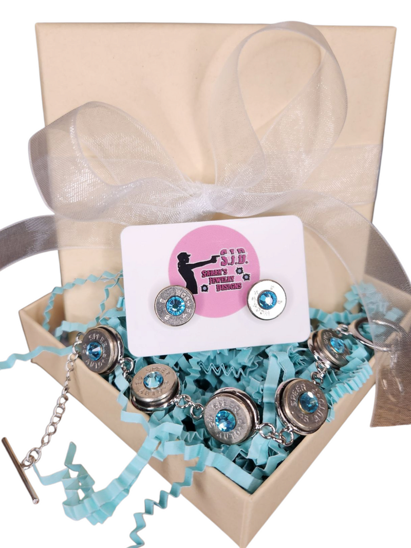 This 2 Piece sets includes 1 bracelet and 1 pair of our signature head stamp stud earrings.